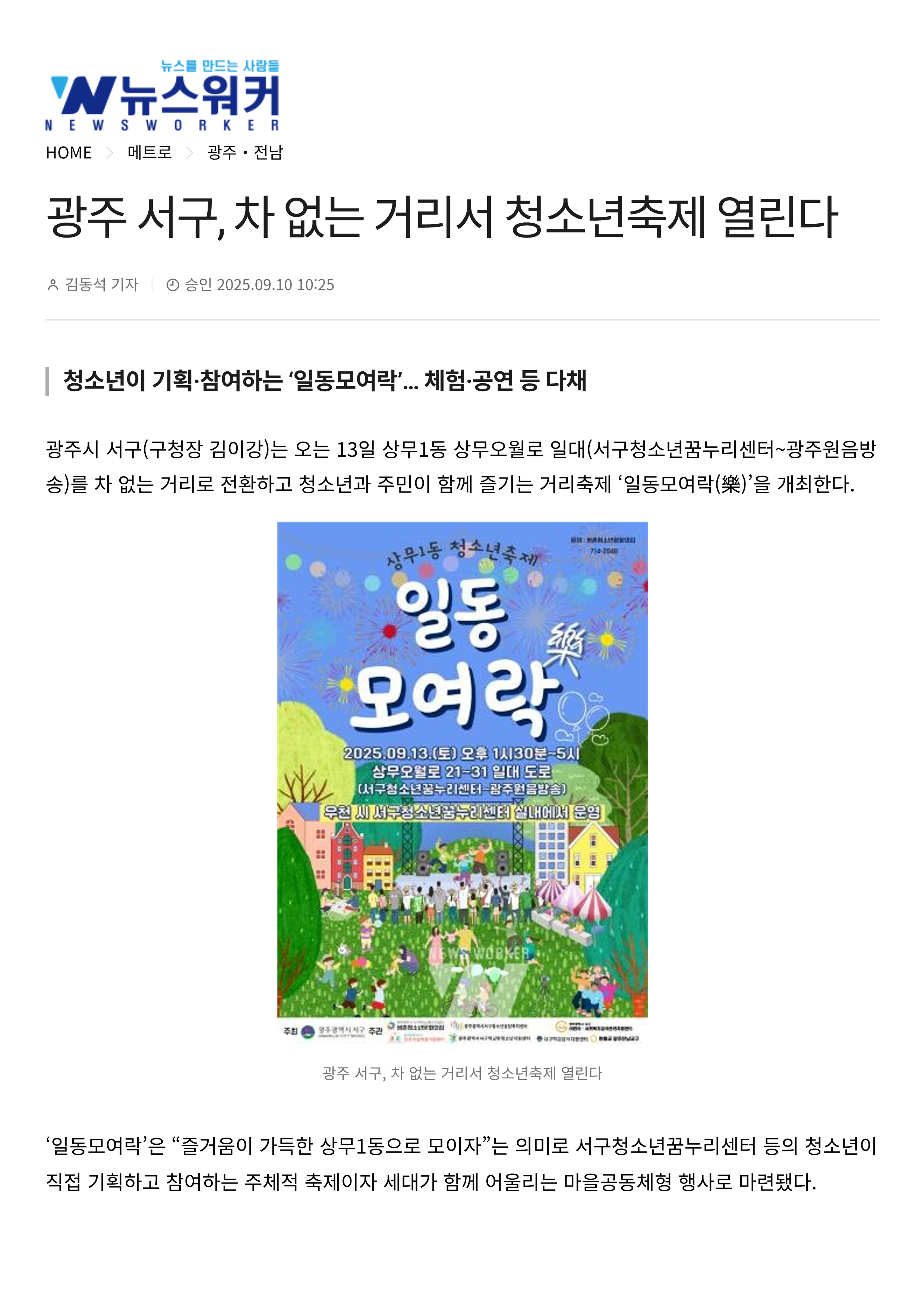 | 0910 광주 서구, 차 없는 거리서 청소년축제 열린다 | |