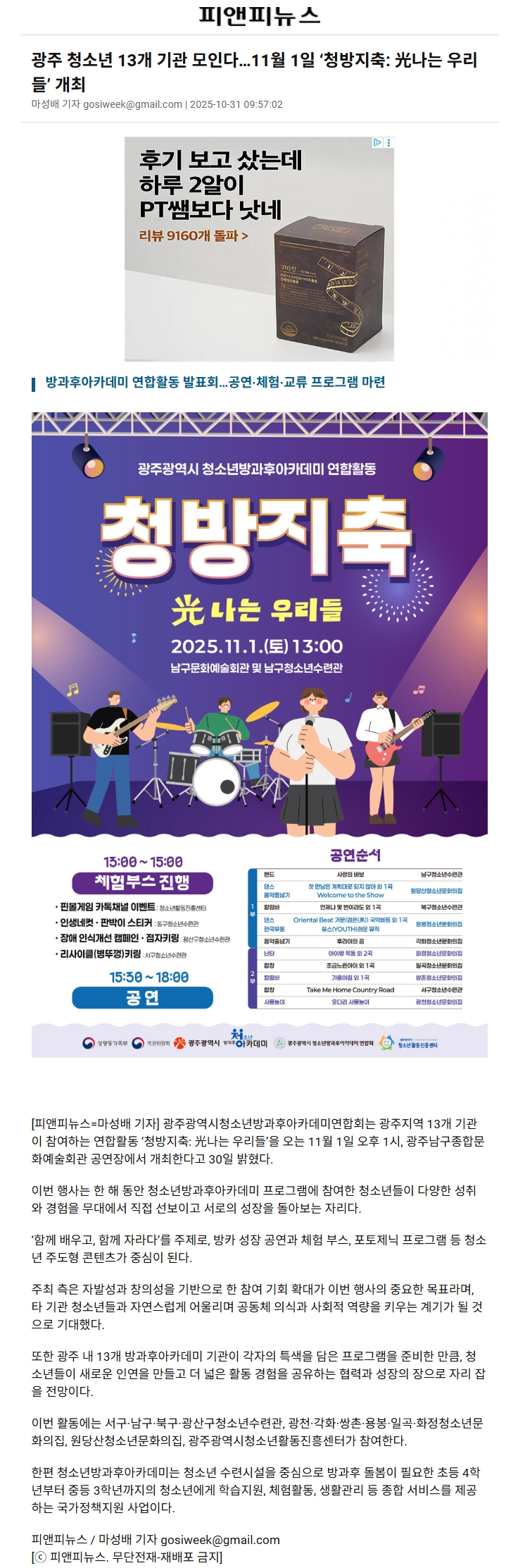 | 1031 광주 청소년 13개 기관 모인다...11월 1일 '청방지축: 光나는 우리들' 개최 | |