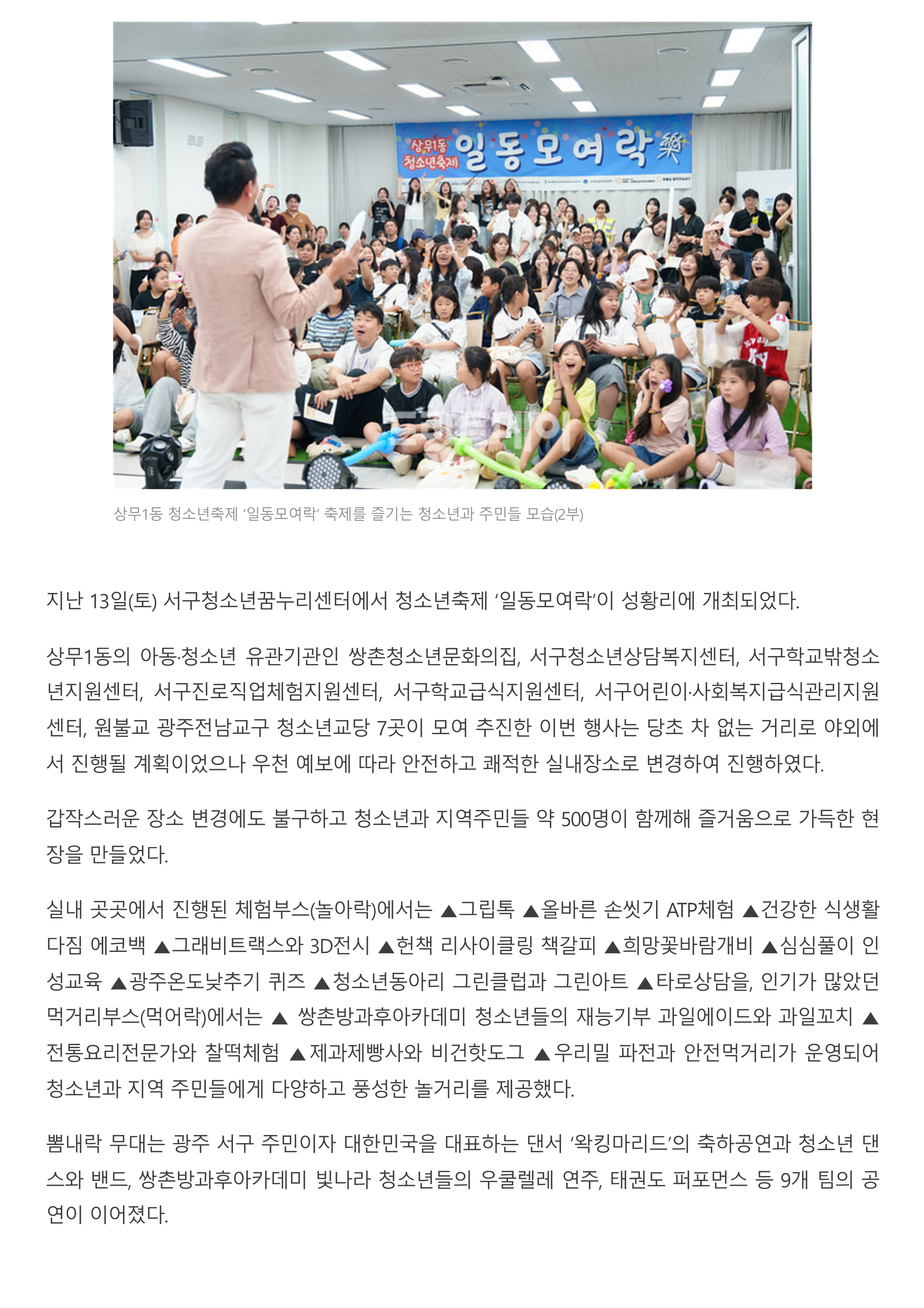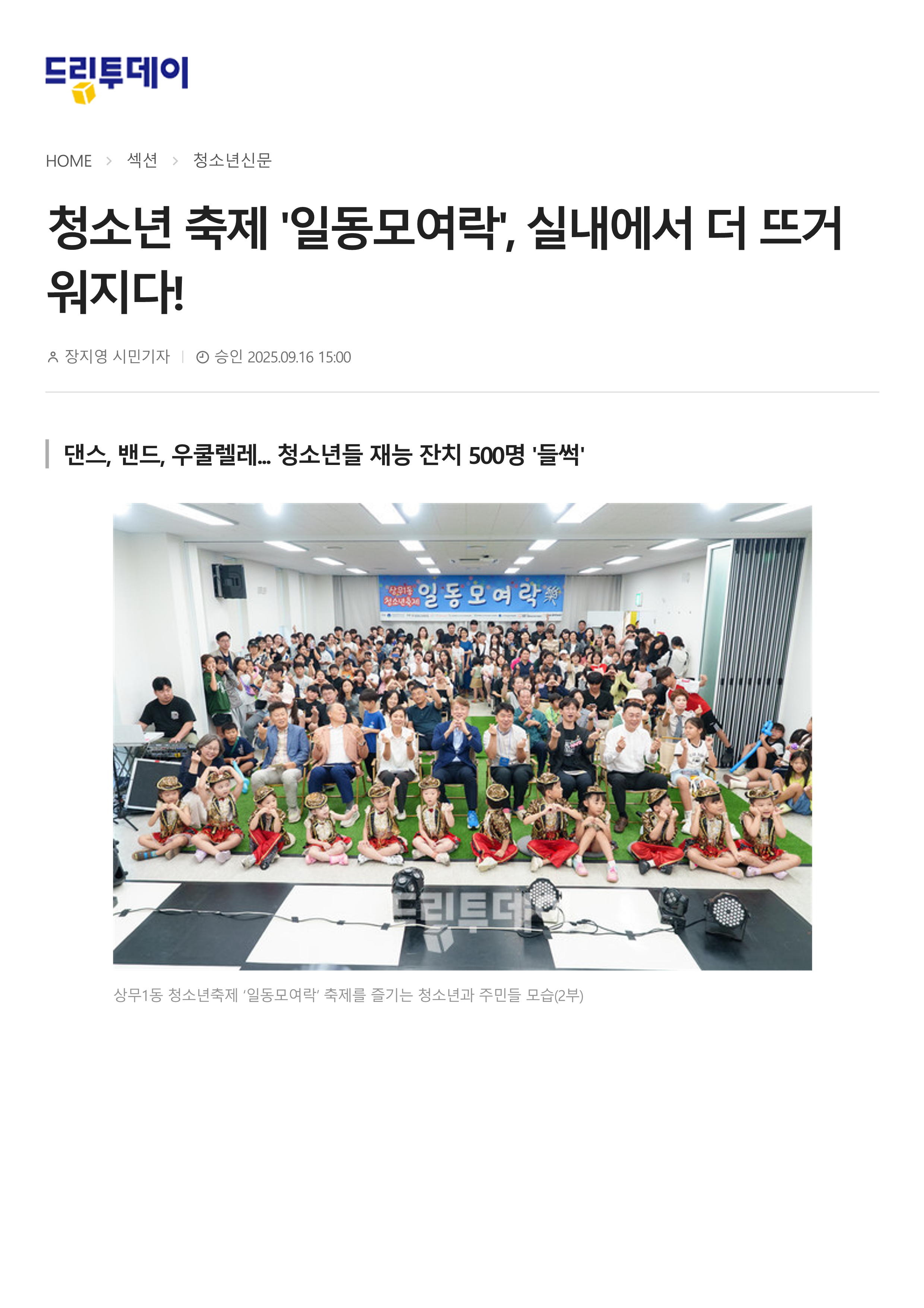 | 0916 청소년 축제 '일동모여락', 실내에서 더 뜨거워지다! | |