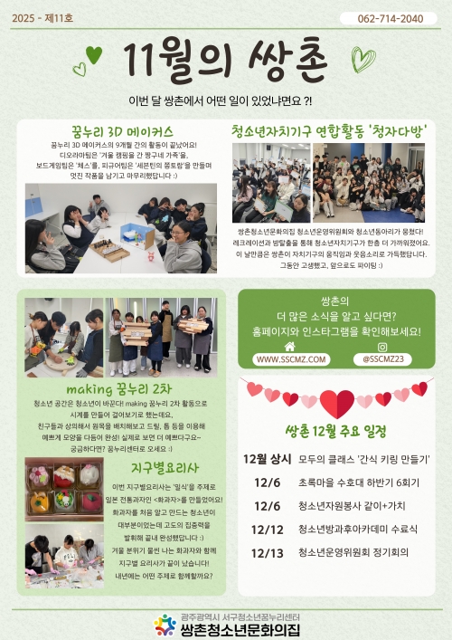 COPYRIGHT (C) 2023 쌍촌청소년문화의집. ALL RIGHT RESERVED. Designed by hankook-i.co.kr