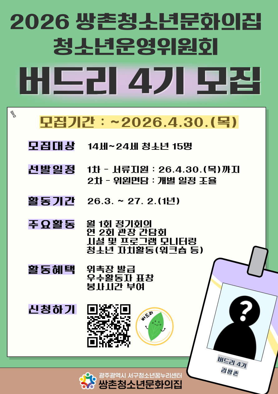 * 쌍촌청소년문화의집 예비청소년지도사 채용공고